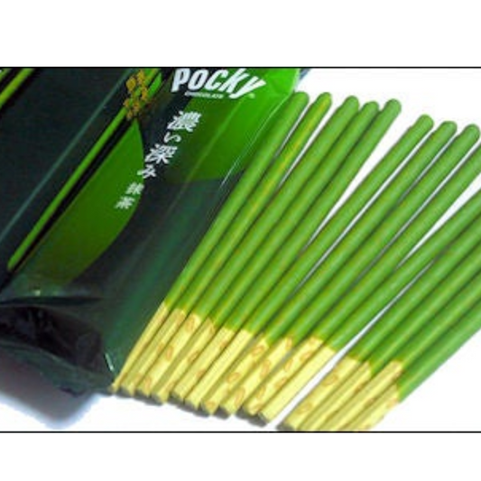 (Pocky (rusk covered with rich matcha flavoured cream)