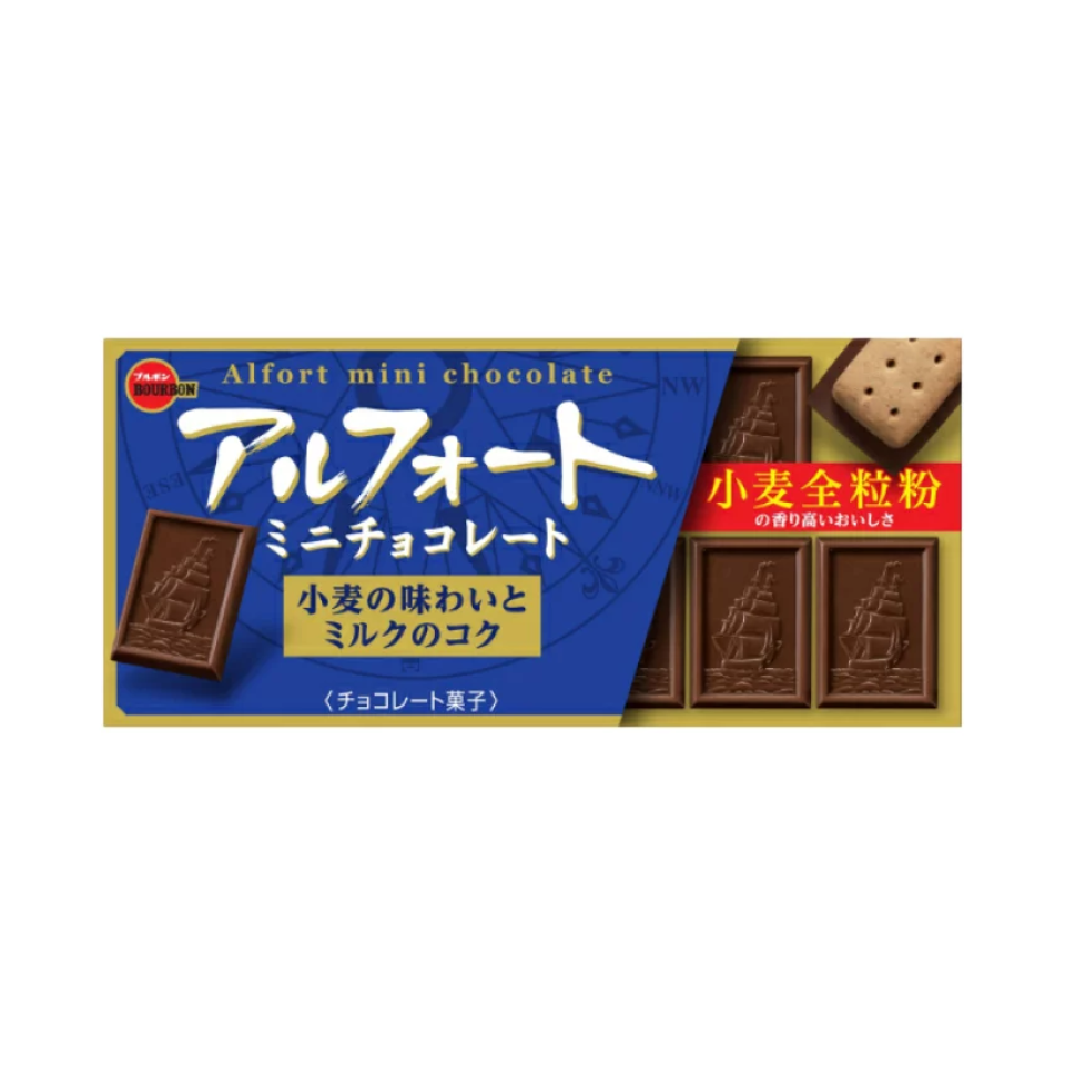 Alfort is a popular confectionery product from the Japanese company Bourbon. This chocolate-covered biscuit has a unique design, with a sailing ship engraved on the chocolate side, symbolizing adventure, dreams and romance.