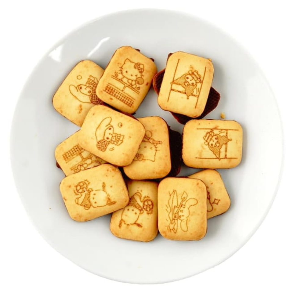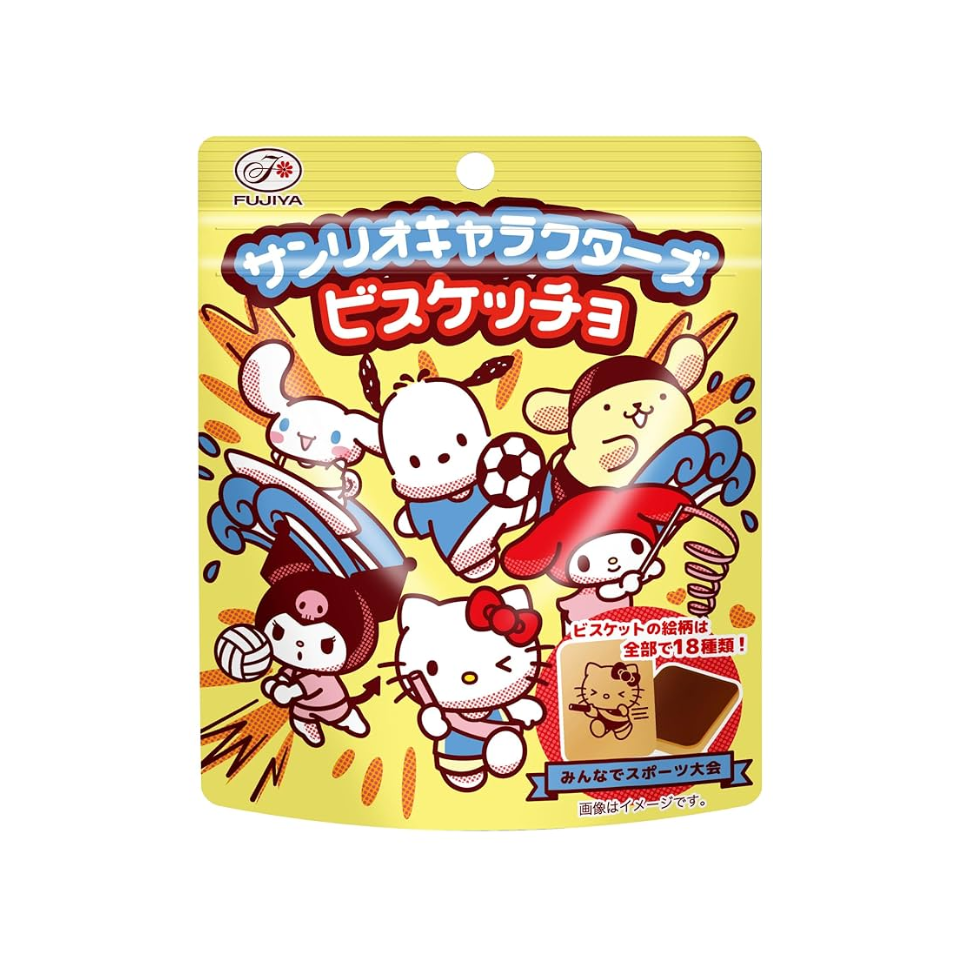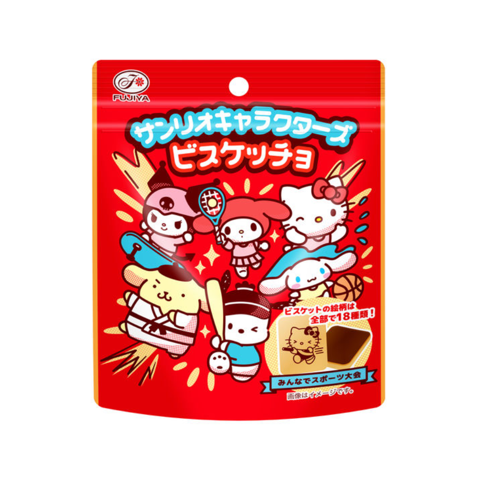 Sanrio Characters Biscuits in a 42g pack are a delicious and fun snack that combines great taste with beloved characters. The biscuits feature a delicate milk flavor and a crunchy texture, with a layer of milk chocolate covered on the underside of each piece, adding a rich, nutty taste. Each biscuit is decorated with fun graphics of popular Sanrio characters like Hello Kitty, Cinnamoroll, and others exercising, making this product a favorite with children and adults alike, making it a great snack or gift.