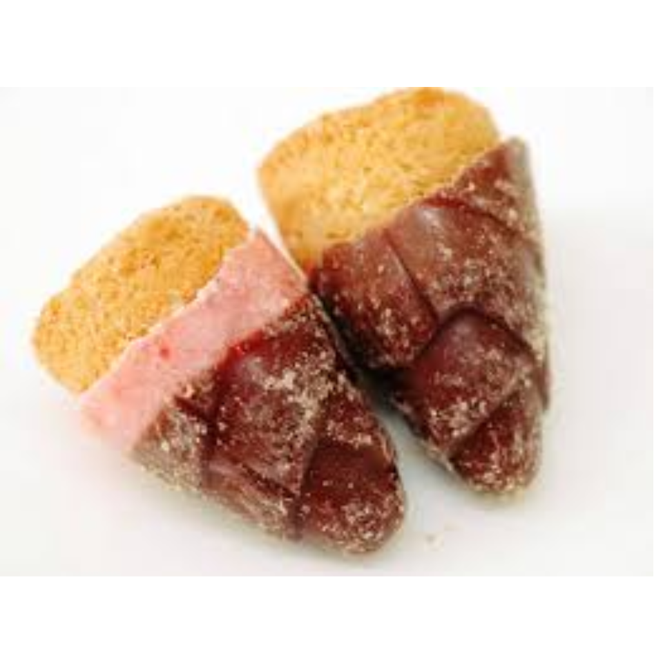 Takenoko no sato (biscuit covered with strawberry and chocolate flavored cream)