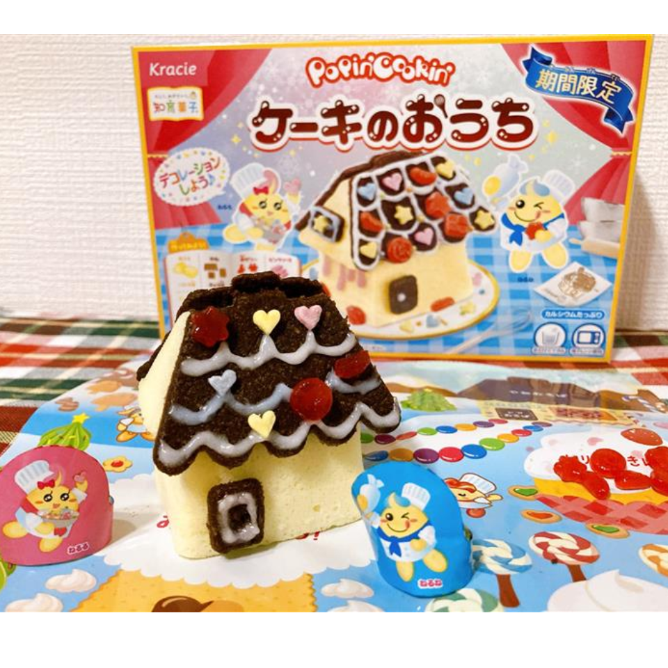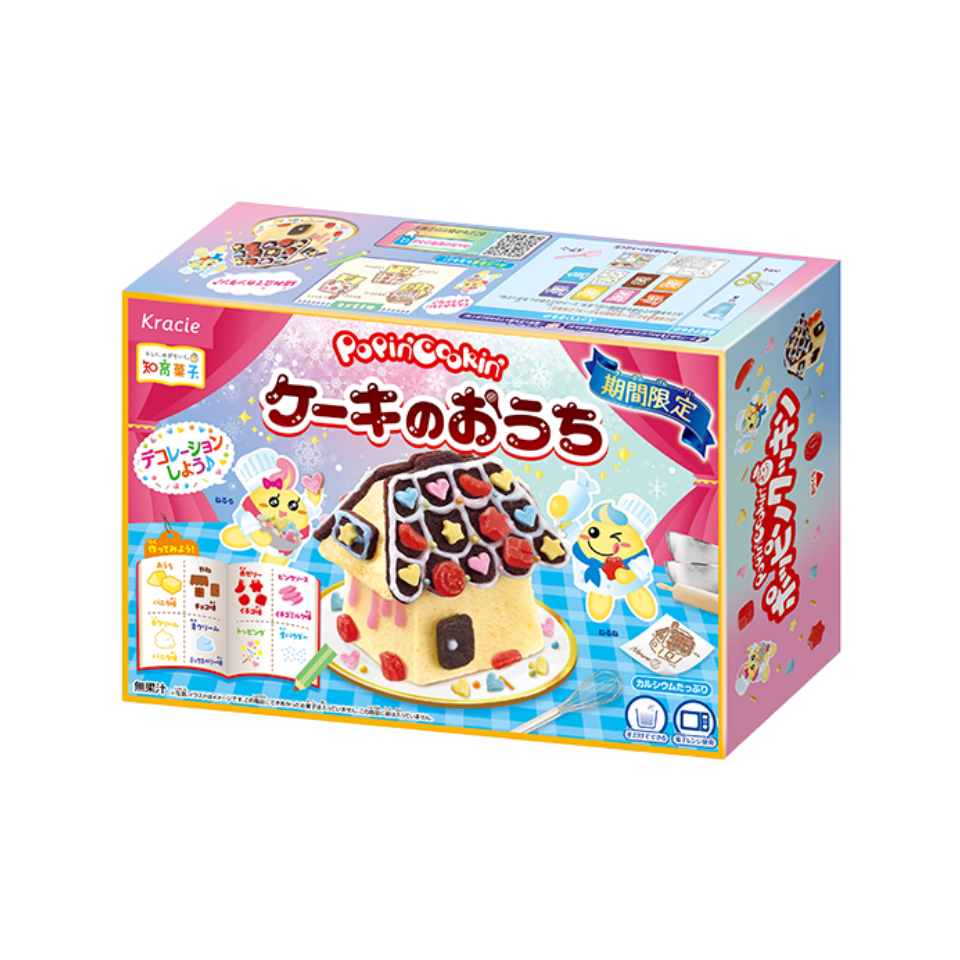 This house-shaped cake transforms into an educational toy, allowing you to decorate the base with vanilla and top it with chocolate. It sparks creativity with strawberry milk sauces, vanilla cream, raspberry toppings, and colorful sprinkles. It features a microwave-flour cake base.