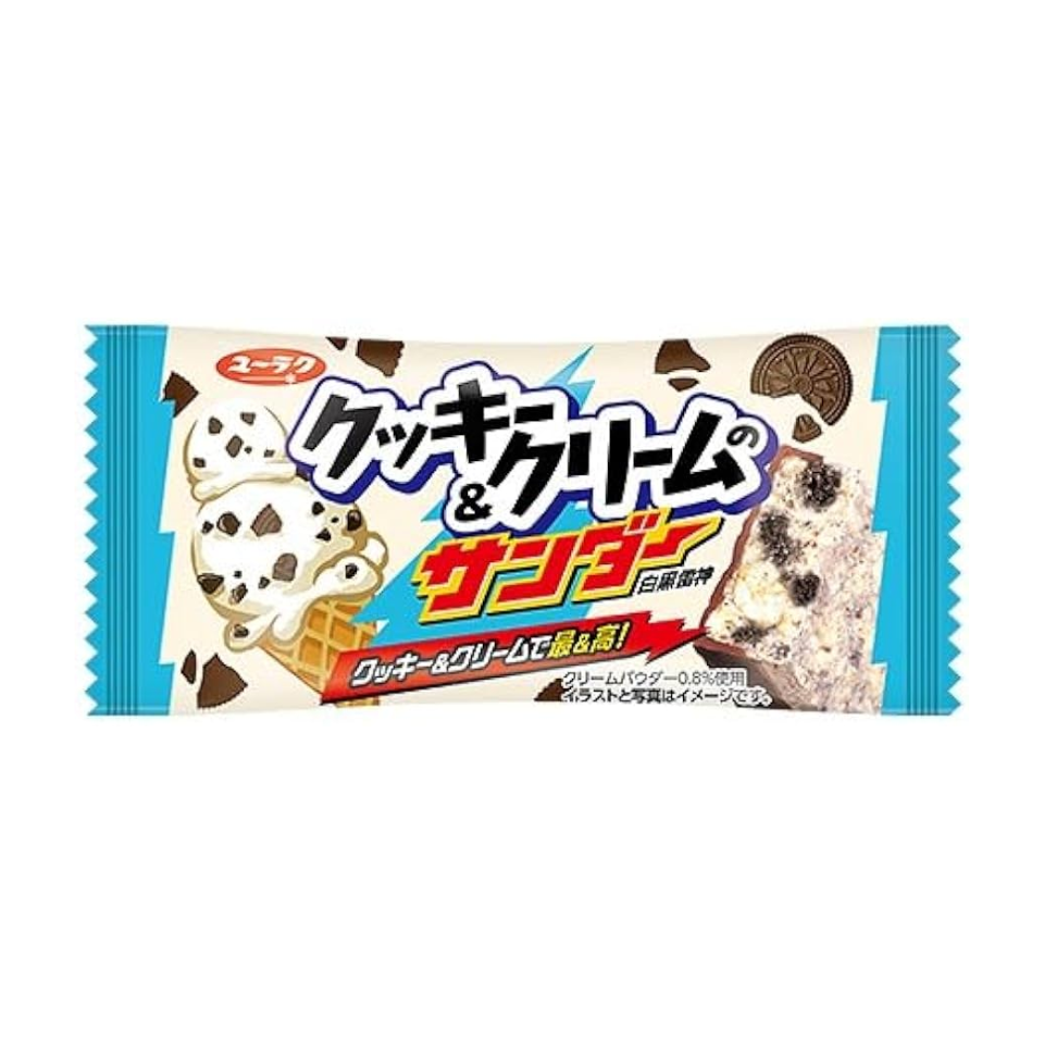 "Cookies and Cream Thunderbolt" is a chocolate bar that combines rich, creamy white chocolate (made with Hokkaido milk) with crunchy cocoa biscuit pieces. It also contains cream powder and toasted butter for a smooth texture and deep taste. Additionally, butter biscuit pieces and Vientiane add a light crunchy touch, for a wonderful balance of sweetness and bitterness and a "crunchy and light" texture. Inspired by the popular Cookies and Cream ice cream flavor, it offers a new experience within the Black Sander series.