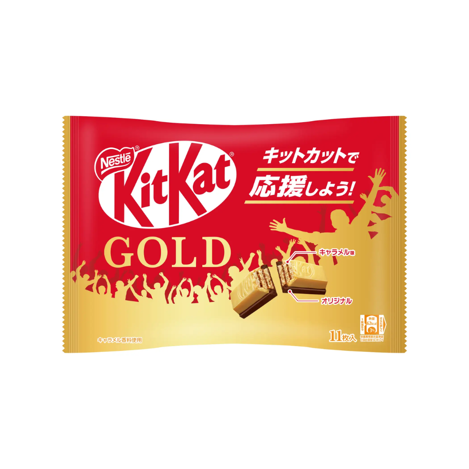 Kit Kat Gold Activity Support is a special edition Kit Kat inspired by the color gold, which symbolizes victory and glory. This product features a unique blend of salted caramel flavor and authentic milk chocolate, offering the perfect balance of rich sweetness and luxurious cocoa flavor. Ideal for students participating in school activities, and for the parents, teachers, and alumni who support them, this product is the perfect snack to encourage and motivate them. The wrapper features a design depicting people supporting each other, and you can write an encouraging message or goal on the individual pack, making eating a Kit Kat a real moment of support and participation.