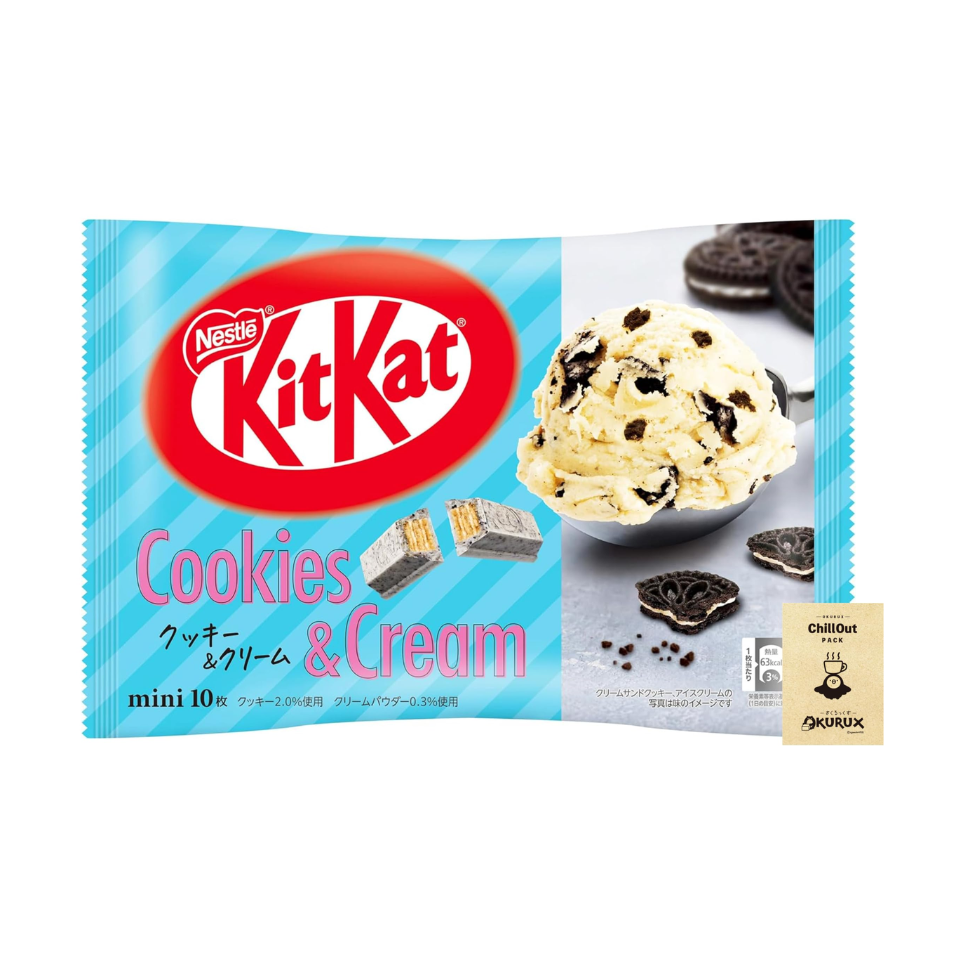 Kit Kat Cookies & Cream is a popular chocolate bar that combines white chocolate with cookies and cream pieces, giving it a crunchy texture and a sweet, smooth taste. The perfect balance of toasted cookies and creamy chocolate makes it a favorite with kids and adults alike.