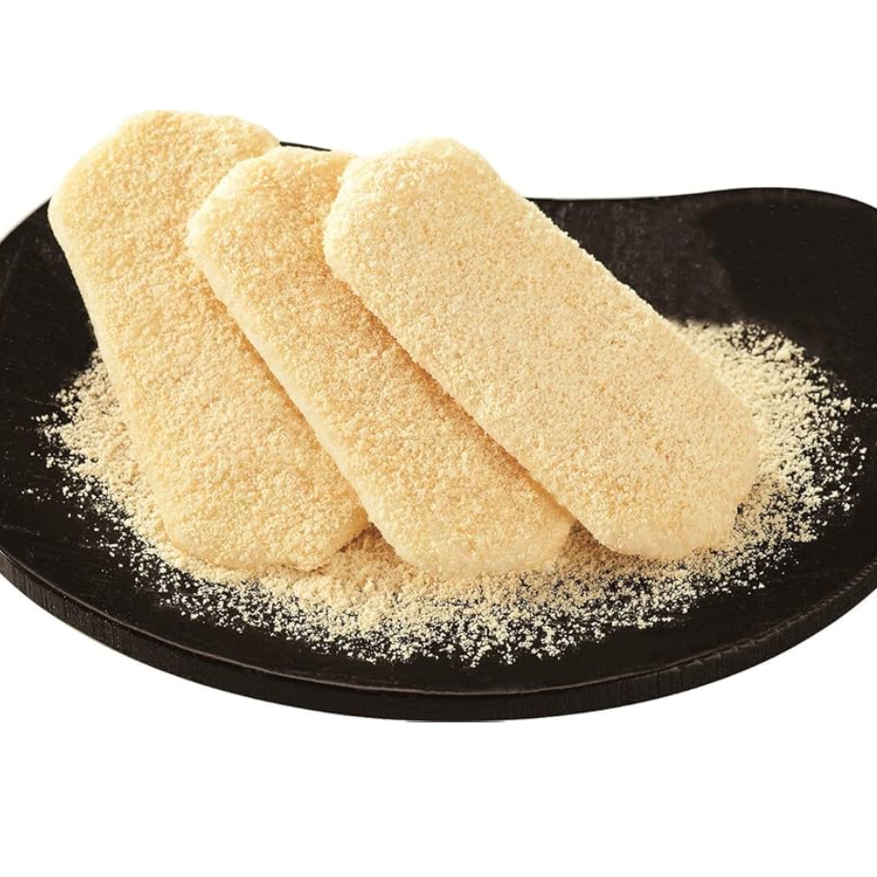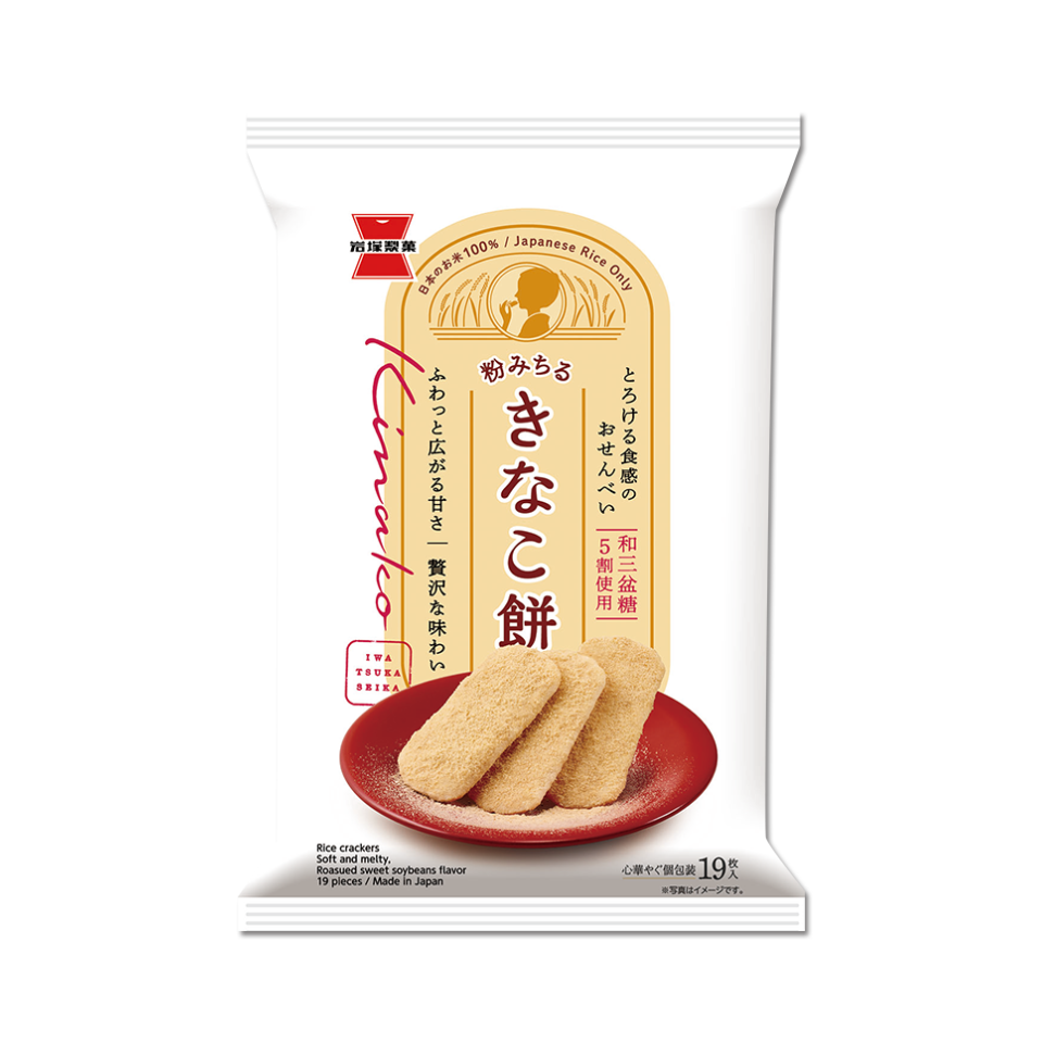 Kinako Mochi from Iizuka Seika is a Japanese rice cracker that features a sprinkling of powder. Kinako (roasted soybeans), sugar, and premium Japanese sanbon are sprinkled over it like soft snow, providing a delicate sweetness and a wonderful melt-in-the-mouth flavor. Made from Hokkaido soybeans, the roasted kinako exudes a sophisticated sweetness that appeals to all ages.