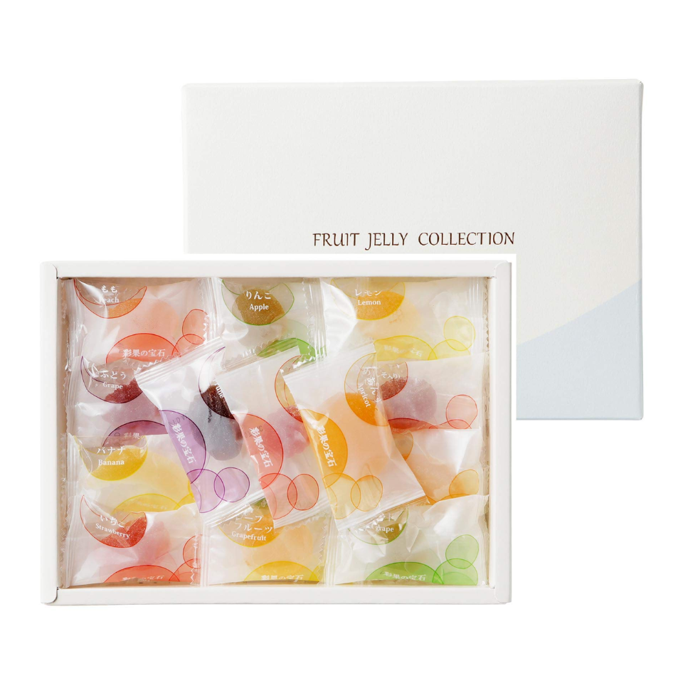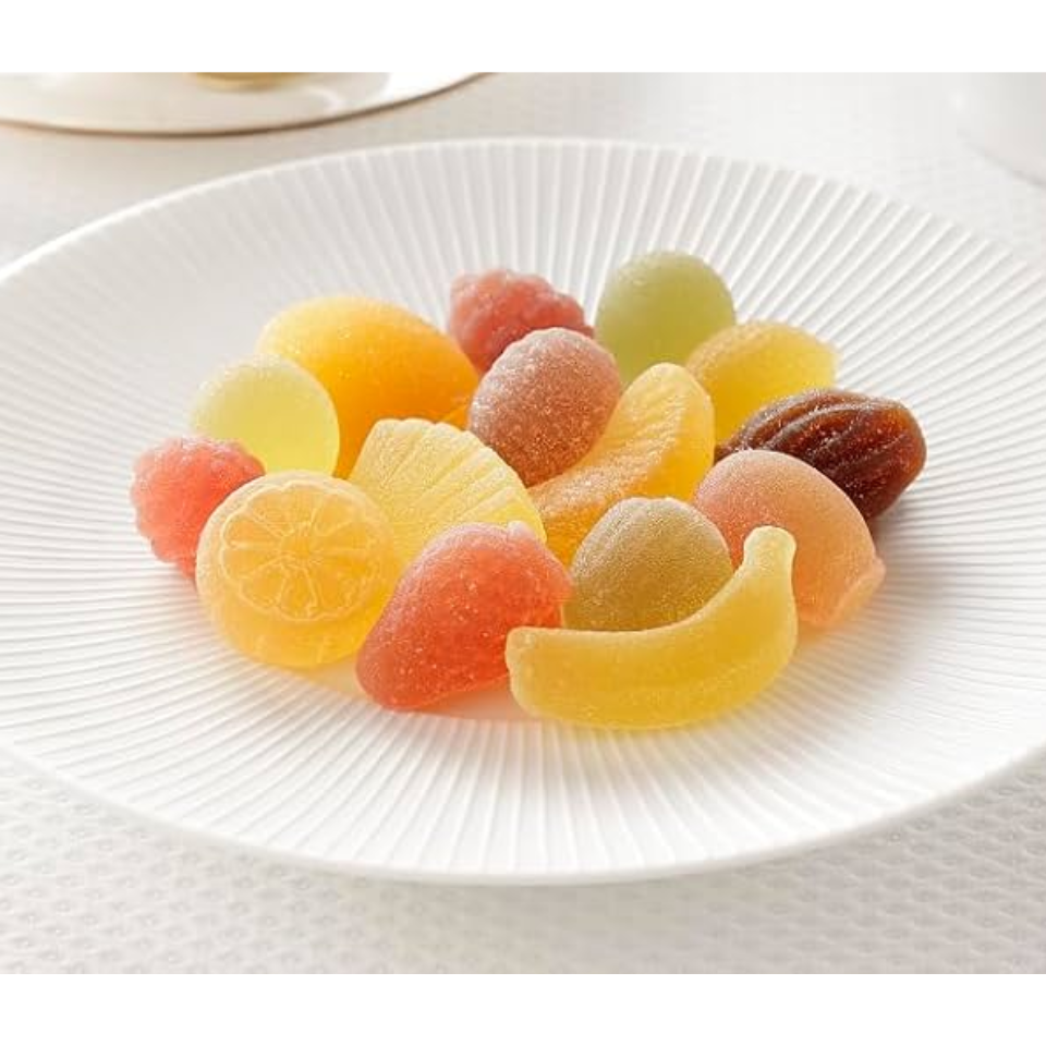 The Saika Jewels Fruit Jelly Collection is a premium assortment of Japanese jelly sweets made from natural fruit juices and pulp. The collection features vibrant colors and jewel-like shapes that mimic real fruit. The collection includes 15 different flavors, including apricot, pineapple, banana, apple, peach, green plum, red plum (with shiso), grapefruit, grape, musk, orange, strawberry, dried plum, lemon, and raspberry. These sweets boast a natural taste, mild sweetness, and a soft, pleasant texture, making them ideal for gifts or tea time.