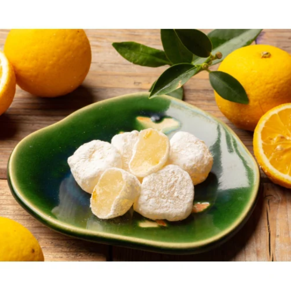 Yuzu mochi is a traditional Japanese sweet made from soft mochi dough containing the fragrant peel of the yuzu fruit, characterized by the refreshing and sweet flavor of yuzu. The product comes in individual packages totaling 130 grams, making it a convenient snack or gift. Its color and flavor reflect the seasonal mood, combining the soft texture of mochi with the distinct flavor of yuzu.