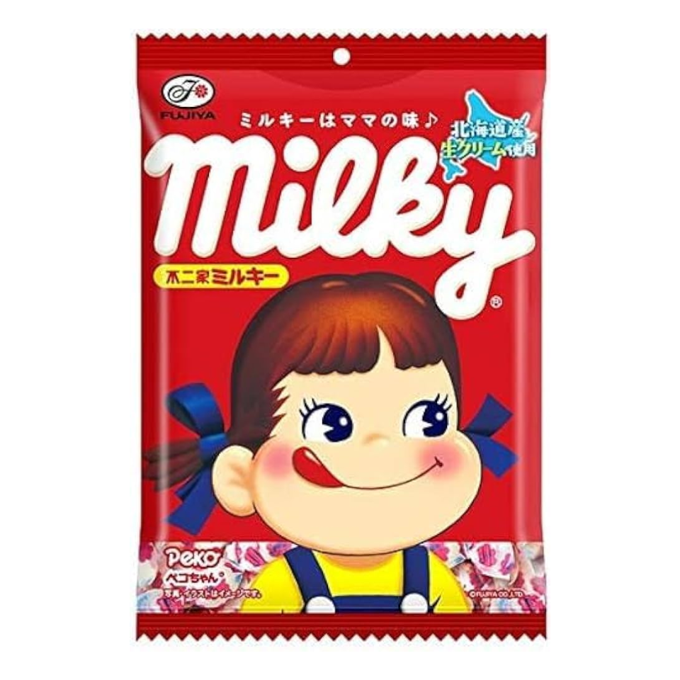 Below is a description of Milky (ミルキー) candy, its features, ingredients and nutritional information in Arabic: