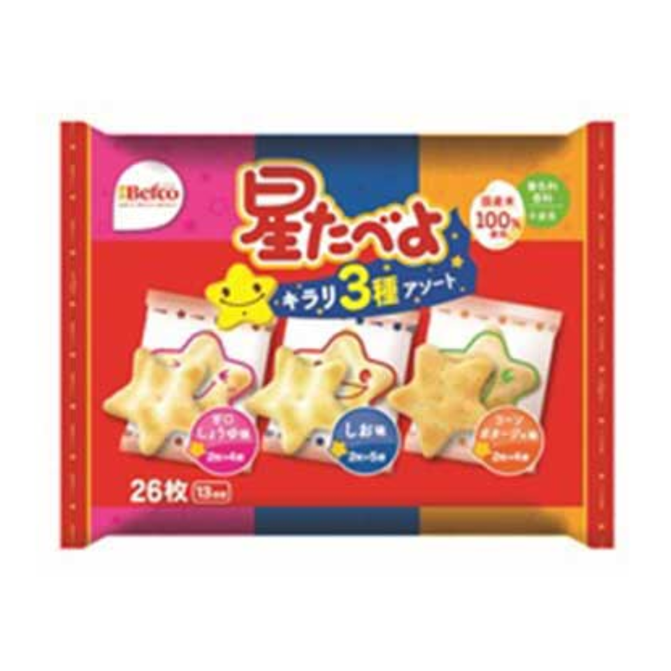 Energy: 35.2 kcal, Protein: 0.2 g, Fat: 2.0 g, Carbohydrates: 4.1 g, Salt equivalent: 0.15 g Content: 26 pieces (4 bags x 2 pieces of sweet soy sauce flavor, 4 bags x 2 pieces of corn soup flavor, 5 bags x 2 pieces of salt flavor) Allergy Warning: Contains wheat, soy and milk ingredients.
