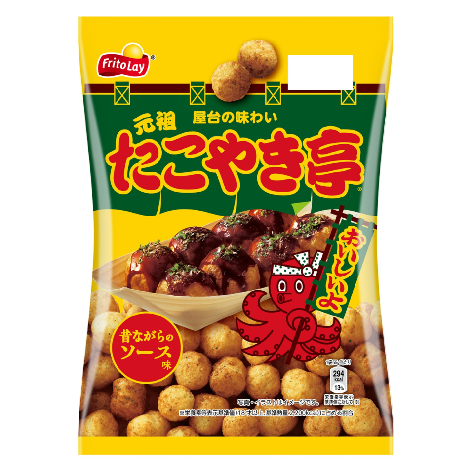 Calbee's Genshi Takoyaki-te with Traditional Sauce Flavor is a nostalgic corn snack.