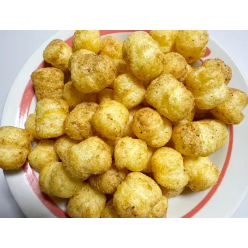 Corn kernels (locally produced), vegetable oil, sauce powder, sugar, tomato flavour powder, hydrolysed protein (contains soybeans), wheat flour, bonito fish powder, osa (seaweed), salt, octopus powder/flavours (amino acids and others), acidifiers, calcium carbonate, colours (caramel, carotenoids), flavours (derived from chicken and apple), sweeteners (sucralose, stevia: derived from milk, licorice), spice extract