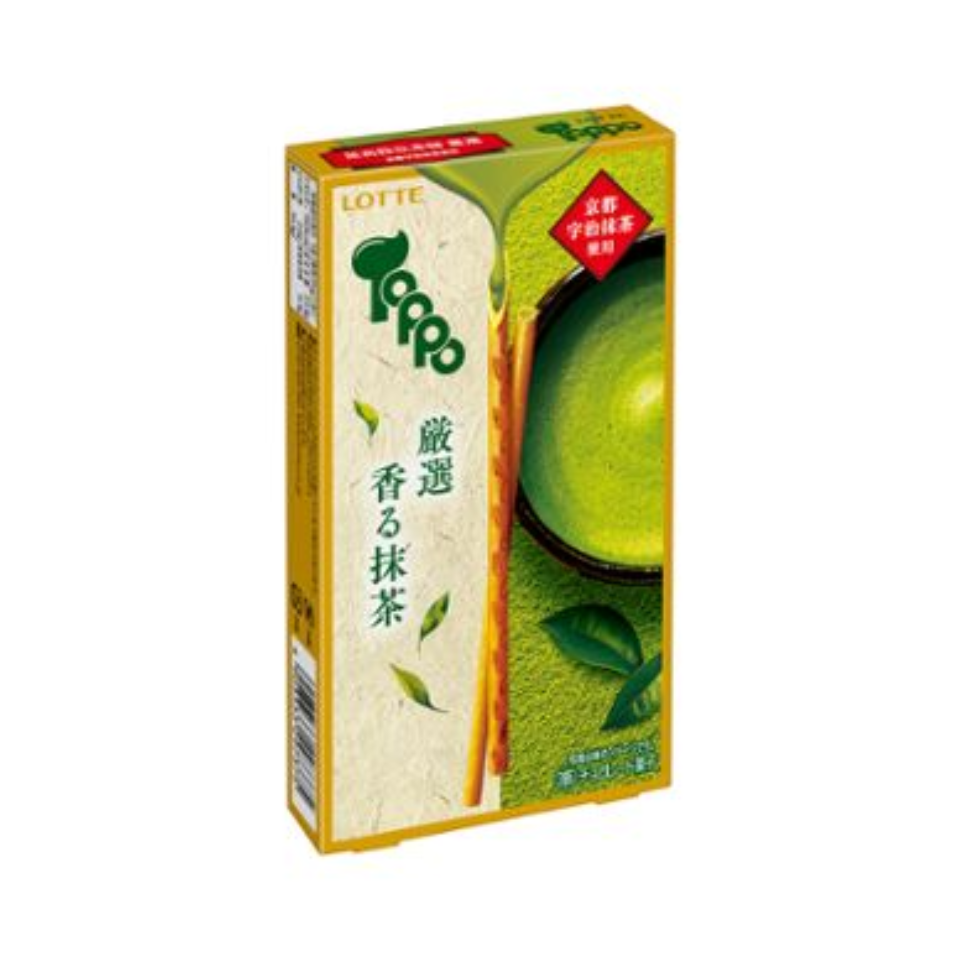 «توپو ماتشا عطري مختار بعناية هو منتج محدود المدة يستخدم شاي أخضر أوجي كيوتو مختار بعناية من أعلى درجة شاي ماستر، ويتكون من بريتزل خاص ممزوج بمكسرات الهازل المحمصة العطرية، محشو بشوكولاتة غنية تعبق بعطر الشاي الأخضر العميق.