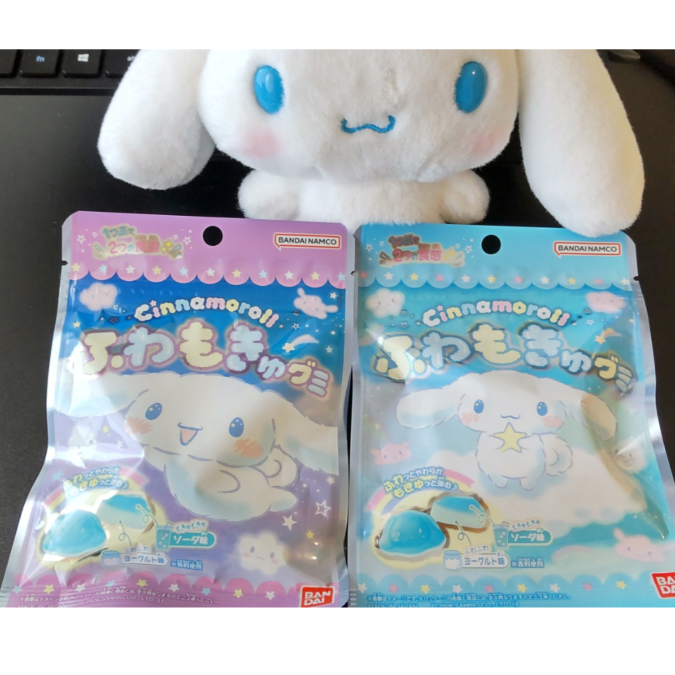 حلوى غومي بشكل سينامورول، لُقيمات لطيفة بحجم صغير، بتصميمين مختلفين للعبوة، تُظهر شخصية سينامورول كما هي في الغومي.