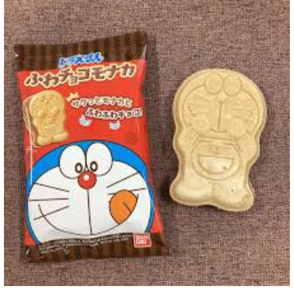 "دورا إيمون فووا تشوكو موناكا" من بانداي، حلوى شعبية تحتوي على موناكا مقرمشة على شكل درا إيمون محشوة بشوكولاتة هوائية فخمة. طبقة مزدوجة من الشوكولاتة البيضاء والحليب لملمس خفيف وممتع، وإذا حصلت على "موناكا الحظ ذات العيون القلبية" فهناك مفاجأة خاصة!