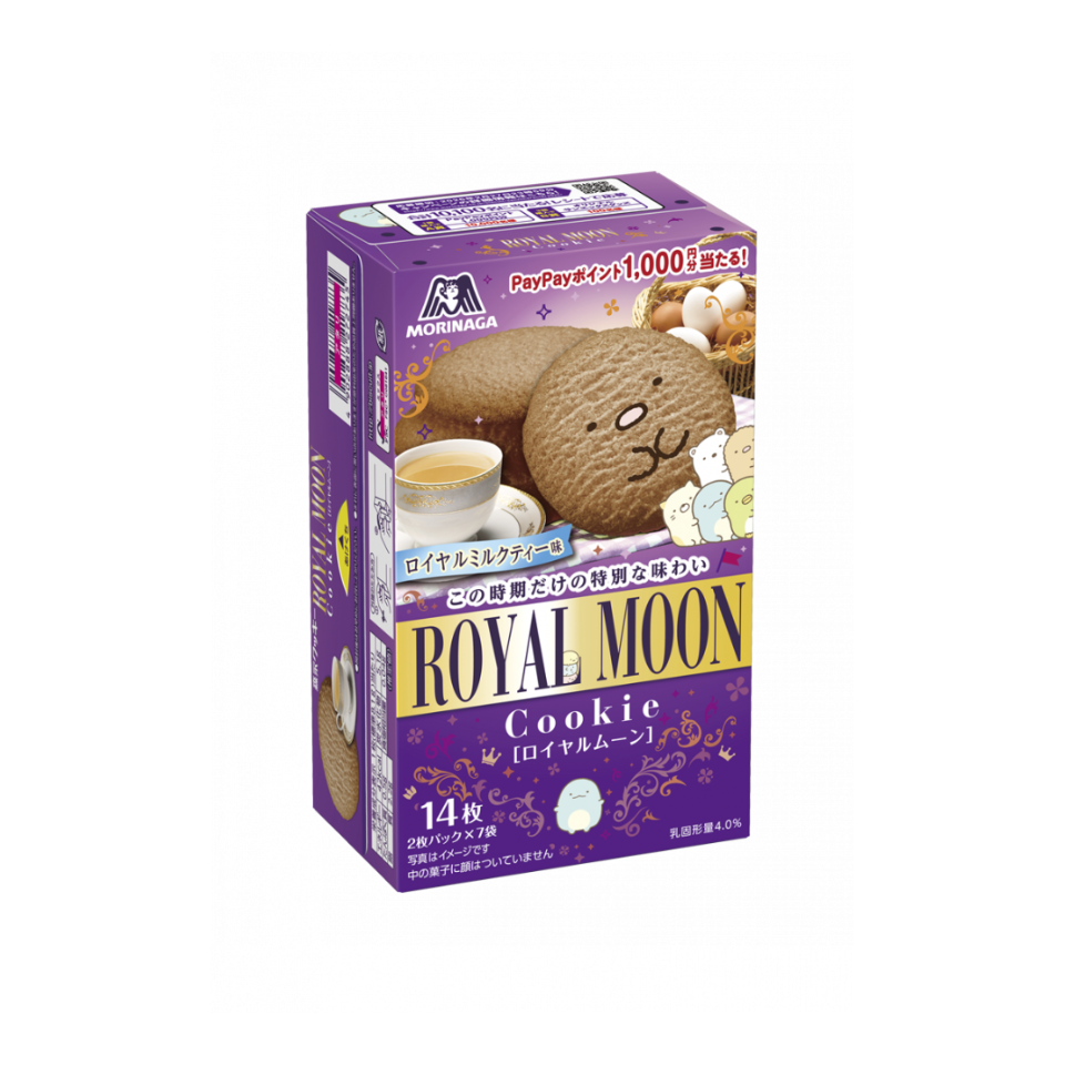 رويال مون بنكهة شاي الحليب الملكي هو بسكويت موسمي محدود يجمع بين نكهة البيض اللطيفة لبسكويت مون لايت وعبير شاي الحليب الملكي الغني. يتميز بقوامه الهش وحلاوة معتدلة، مع رائحة شاي جذابة تجعله مثالياً لوقت الشاي أو كهدية.