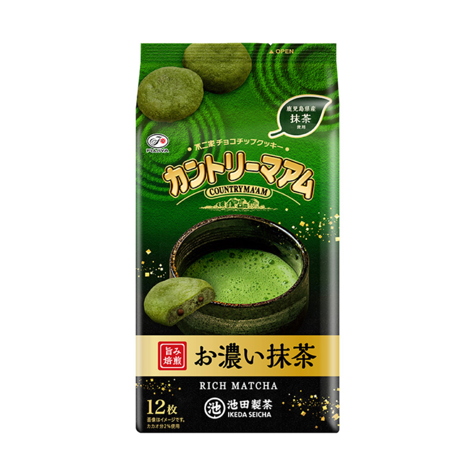 كانتري مام (ماتشا غني) هي بسكويت رقائق الشوكولاتة محدود الإصدار من شركة فوجيا، مصنوعة بإضافة كمية وفيرة من ماتشا مقاطعة كاغوشيما إلى العجينة. تتميز بملمسها الرطب والمهروس الفريد، مع تناغم مرارة الماتشا ولذتها مع حلاوة رقائق الشوكولاتة، لتوفير نكهة يابانية رائعة. تحتوي العبوة على 12 قطعة بسكويت مغلفة بشكل فردي، مثالية كوجبة خفيفة أو وقت الشاي.