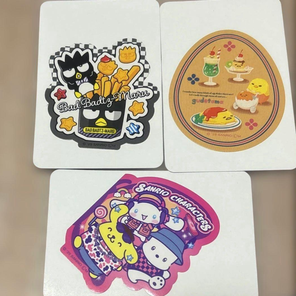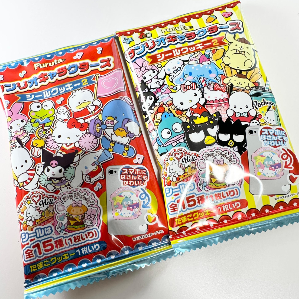 كوكيز بيضاوية لطيفة مزينة بشخصيات سانريو الشهيرة مع ملصقات جميلة. تقدم ملمساً مقرمشاً لذيذاً، والملصقات مثالية للجمع أو وضعها على الهاتف. متوفرة بـ15 نوعاً مختلفاً.