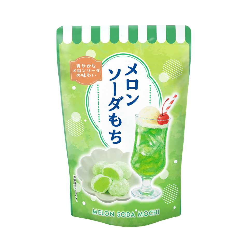 ميلون صودا موتشي من سيكي، حلوى موتشي ناعمة بحجم صغير مغلفة بشكل فردي مستوحاة من مشروب ميلون صودا الكلاسيكي في المقاهي الرجعية. نكهة منعشة حلوة مع لمسة عطرية وباقة ألوان مبهجة، مثالية كهدية أو وجبة خفيفة مشتركة.
