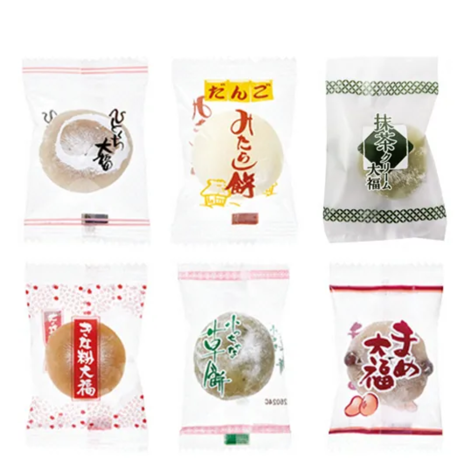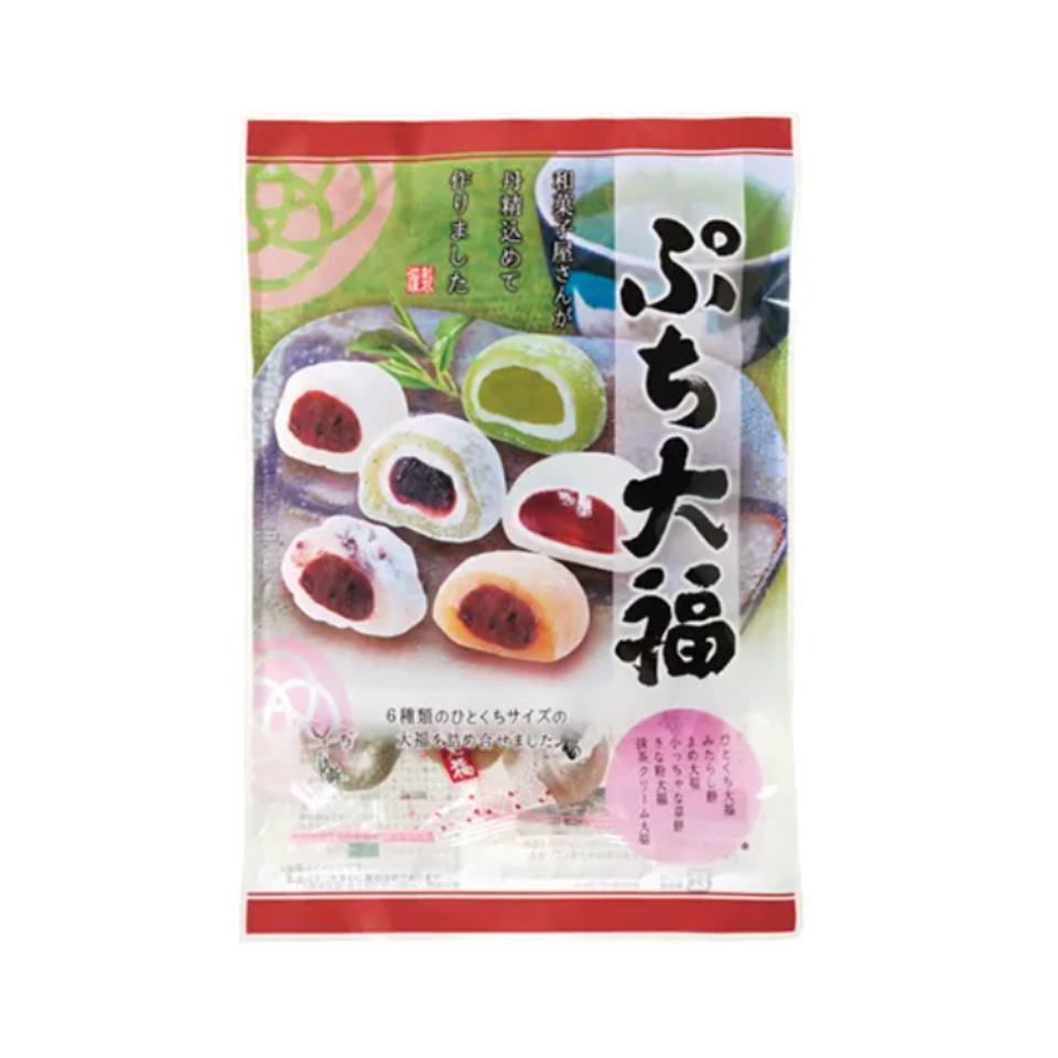 مجموعة متنوعة من دايفوك ذات الحجم الصغير مع قوام مطاطي ولذيذ. تحتوي على 6 نكهات مختلفة مثل كريمة الشاي الأخضر والكيناتو (دقيق الصويا المحمص) والكسترد، مع طعم ياباني تقليدي متوازن.